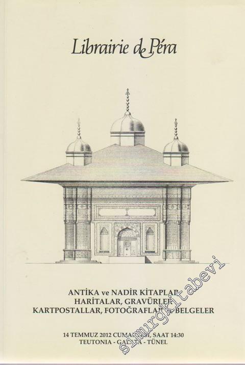 158540 . 71. Librairie de Pera: Antika ve Nadir Kitaplar, Haritalar, Gravürler, Kartpostallar, Fotoğraflar ve Belgeler Müzayedesi (14 Temmuz 2012) - , İstanbul: Librairie de Pera, 2012. 215 s.. 16x24. 1. Hamur. Karton Kapak. Türkçe, Çok İyi, #smrgKURUMSAL, Katalog, Müzayede Kataloğu
