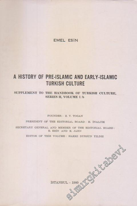 102306 Emel Esin. A History Of Pre-Islamic And Early-Islamic Turkish Culture (Supplement to the handbook of Turkish Culture, Series II, Volume 1/b) - , İstanbul: Yayınevi yok, 1980. 400+116 s. + 16 levha. 16x24. 1. Hamur. Karton Kapak. Türkçe, Yeni Gibi, #smrgTELİF, Tarih, Türk Kültürü Tarihi, İslam Öncesi, Orta Asya
