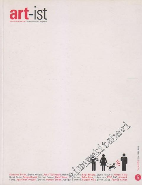 Parrhesia edimi ve sanatta siyasal olan Süreyyya Evren - Erden Kosova Galeri kapısına zincirli sanatçıya faydalı hatırlatmalar Ezgi Bakçay Sanat galiba karın doyuruyor Zeyno Pekünlü Zemin kontrolü Adnan Yıldız Hyper-taklit ego'nun cöküşü; güncel sanatçının etik dertlenisleri Mahmut Koyuncu Sanatta Sınıf Mücadelesi Kamil Şenol Ne olursa olsun... Burak Delier İnisiyatif nedir? H. Ayça İnce Bas Pist Altı Aylık