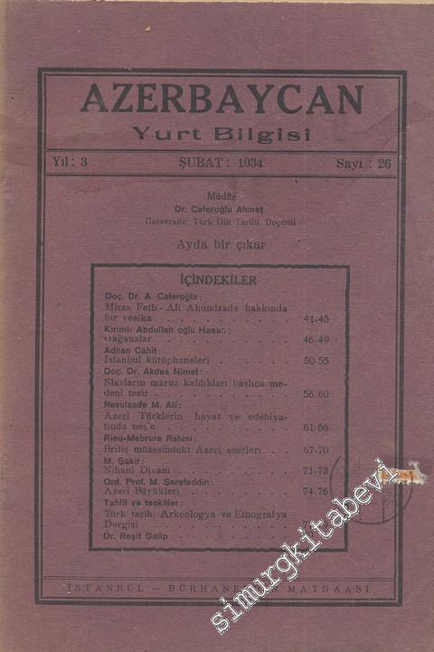 Azerbaycan Yurt Bilgisi - Sayı: 26, Yıl:1934