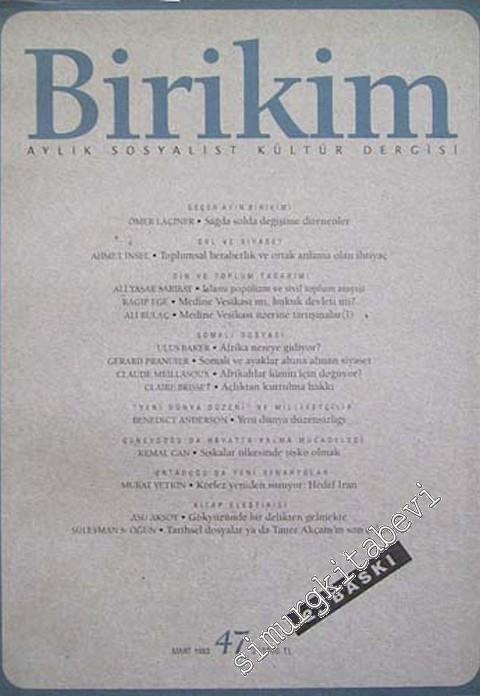 #smrgDERGİ Birikim Aylık Sosyalist Kültür Dergisi - Sayı: 47, Mart 1993
