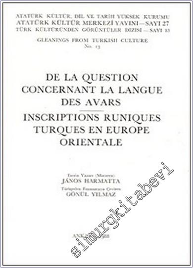 De la Question Concernant la Langue des Avars - inscriptions Runiques Turques en Eurupe Orientale - 1988 #smrgKİTABEVİ