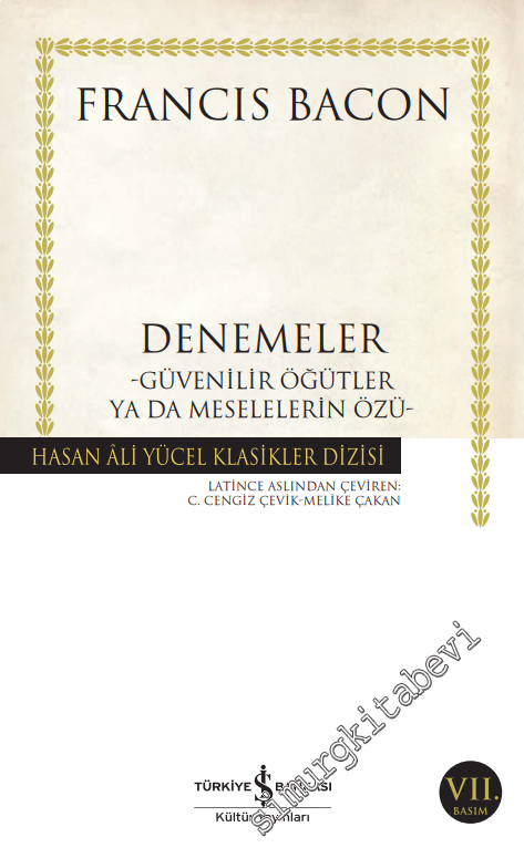 Francis Bacon (1561-1626): Ünlü İngiliz filozof David Hume'un deyişiyle, Bacon dehasının azametinden ve tutumundaki incelikli, insancıl nitelikten ötürü her çağda beğeniyle karşılanmıştır. Bilginin gücünü vurguladığı Denemeler, bilim ve felsefeyi kalıpların baskısından kurtarmak için yazdığı Novum Organum, ideal toplum düzenini ele aldığı Yeni Atlantis başlıca eserlerindendir. Bacon'ın, hayatın etik, politik, maddi ve estetik düzenine dair öğütler verdiği, hayata dair felsefî gözlemlerini paylaştığı Denemeler: Güvenilir Öğütler ya da Meselelerin Özü ilk kez 1638 yılında Latince yayımlandı. Sermones Fideles sive Interiora Rerum başlıklı bu metin, yazarın Denemeler başlıklı İngilizce metninin büyük ölçüde değiştirilmiş halidir. Akıcı ve parlak diliyle her devrin insanına hitap eden bu büyük eser ilk kez başka bir dilde, Türkçede Hasan Âli Yücel Klasikler Dizisi okurlarıyla buluşuyor.
