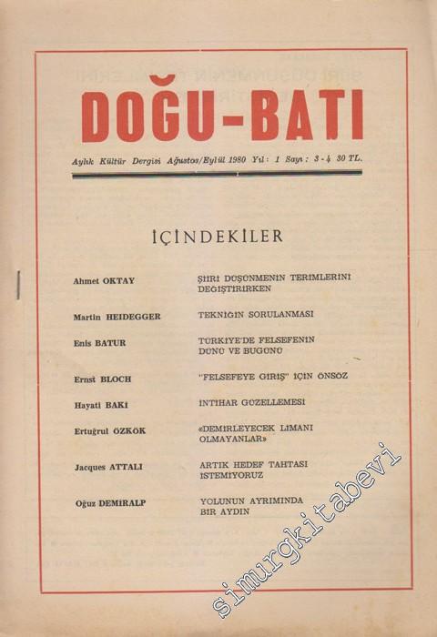 Doğu Batı Aylık Kültür Dergisi - Sayı: 3 - 4 Yıl 1 Ağustos - Eylül #smrgDERGİ