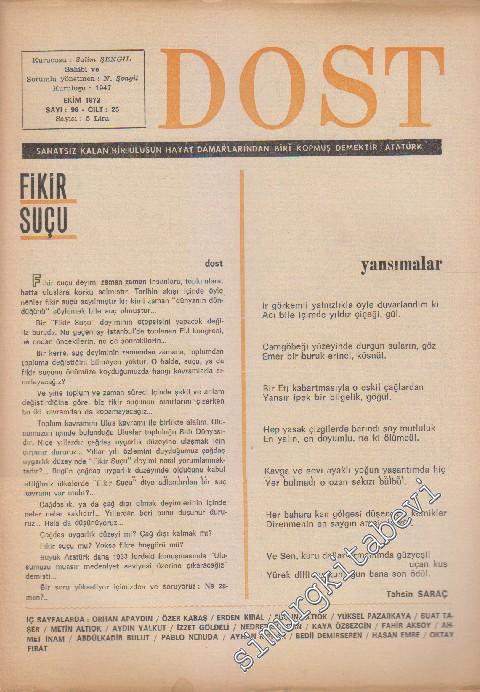 #smrgDERGİ Dost Fikir ve Sanat Dergisi - Sayı: 96 25 Ekim 1972