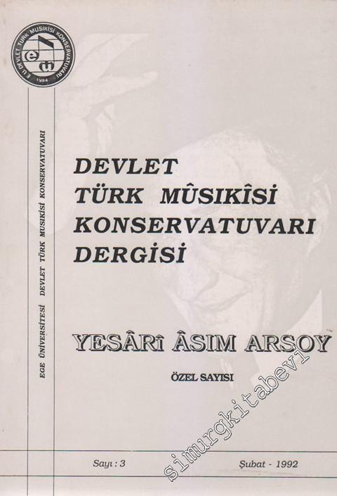Ege Üniversitesi Devlet Türk Musikisi Konservatuvarı Dergisi: Yesari Âsım Arsoy Özel Sayısı - Sayı: 3; Şubat 1992 #smrgDERGİ
