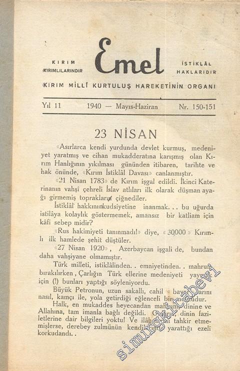 Emel - Kırım Milli Kurtuluş Hareketinin Organı - Sayı:150 - 151 Mayıs - Haziran