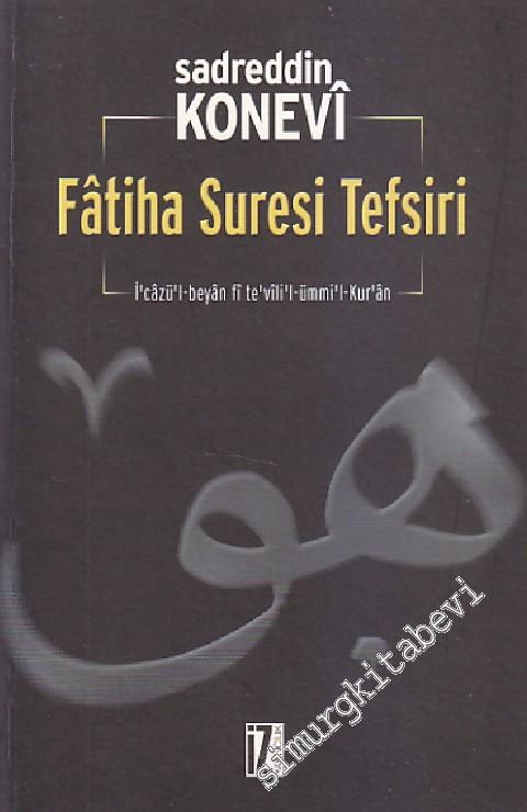 Konevi, Fatiha Suresi'ni ilahi ve kevni bütün hakikatleri ve hakikatler arası ilişkileri özetleyen bir sure olarak görür. Şöyle demektedir: “Hak, sureti itibariyle büyük olan ilk alemi, isimlerinin ve Kalem-i Esma'ya (Kalem-i a'la) tevdi edilmiş ilminin nispetlerinin suretlerini taşıyan bir kitap yapmıştır; suretiyle küçük alem olan insan-ı kamil ise, isim ve müsemma/isimlendirilen mertebelerini birleştiren “orta” bir kitap; aziz Kuranı ise, mahlukun Hakkın sureti üzerinde yaratıldığının açıklayıcısı yapmıştır, böylelikle yaratılışındaki gizem ve suret ve mertebesinin sırrı kendisiyle ortaya çıkar. Aziz Kur'an, insan ile zuhur eden kemalin özelliklerinin açıklayıcı nüshası olmuştur. Fatiha suresi ise, Kur'an'ın eksiksiz ve noksansız nüshasıdır. Bütün tali nüshalar, ilkinin muhtasarı oldukları gibi, aynı şekilde Fatiha Suresi de, ulvi nüshaların sonuncusu olmuştur.” (Arka Kapak'tan)