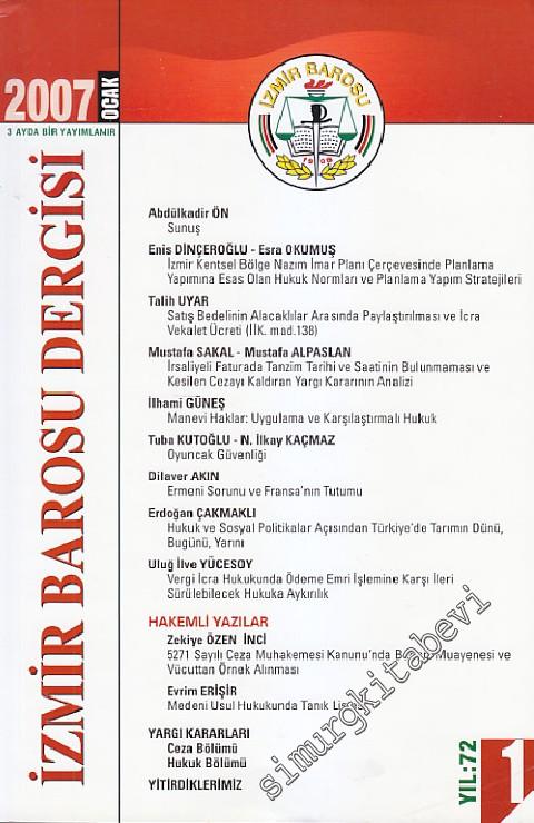 #smrgDERGİ İzmir Barosu Dergisi - Sayı: 1 72 Ocak