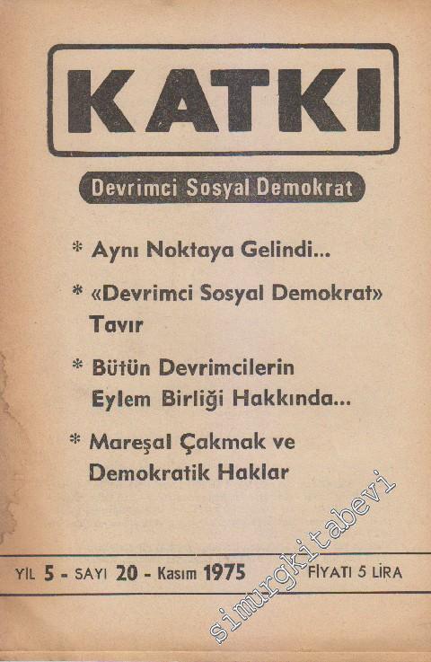 Katkı - Devrimci Sosyal Demokrat Dergisi - Dosya: Aynı Noktaya Gelindi - “Devrimci Sosyal Demokrat” Tavır - Bütün Devrimcilerin Eylem Birliği Hakkında - Mareşal Çakmak ve Demokratik Haklar - Sayı: 20 5 Kasım