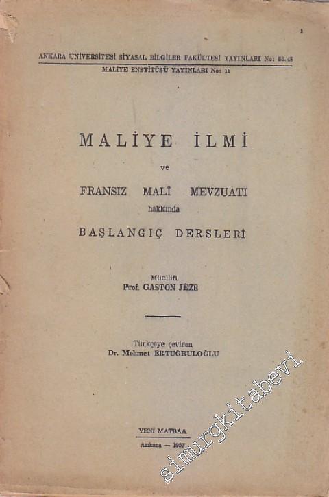 Maliye İlmi ve Fransız Mali Mevzuatı Hakkında Başlangıç Dersleri - 1957 #smrgSAHAF