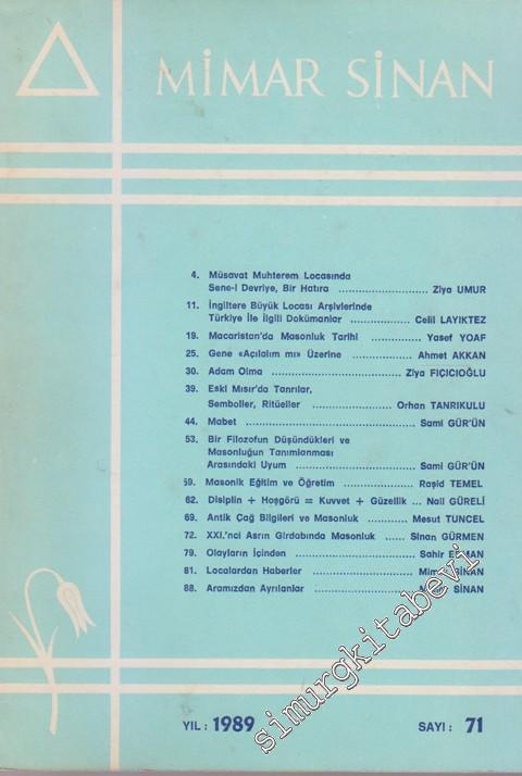 #smrgDERGİ Mimar Sinan Dergisi - Sayı: 71 Mart 1989