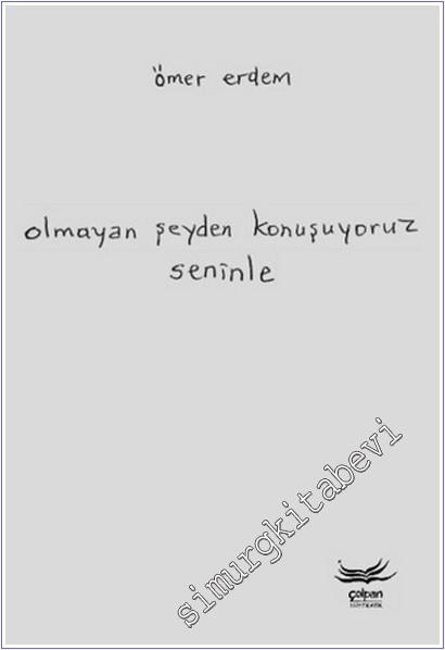 Olmayan Şeyden Konuşuyoruz Seninle, Çolpan Kitap'ın “Hiyeratik” dizisinden çıkan beşinci kitap. Ömer Erdem'in şiirlerinden seçtiği ve el yazısıyla yazdığı kırk şiiri yer alıyor kitapta. Erdem'in poetik tutumunu belirginleştiren şiirler, alın çizgilerinin el yazısıyla nasıl örtüştüğünü görmek için önemli bir fırsat. El yazısı güneş gibidir. Önüne bulut gelse gece çökse bile hep vardır. El yazısı yazı kadar insanın alın çizgilerini verir. Burada benim el yazım, Şiirle, şiirden bize doğru.