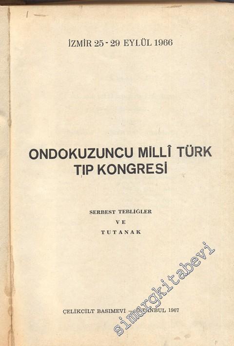 Ondokuzuncu Milli Türk Tıp Kongresi 25 - 29 Eylül 1966: Serbest Tebliğler ve Tutanak - #smrgSAHAF