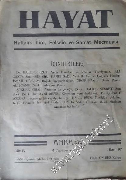 #smrgDERGİ OSMANLICA: Hayat: Haftalık İlim, Felsefe ve Sanat Mecmuası - Cilt: 4 4 Teşrinievvel 1928