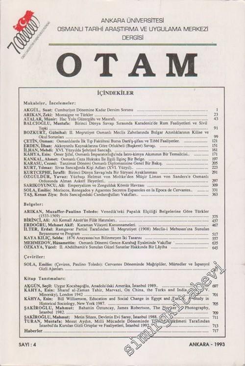 #smrgDERGİ OTAM: Osmanlı Tarihi Araştırma ve Uygulama Merkezi Dergisi - Sayı: 4; 1993
