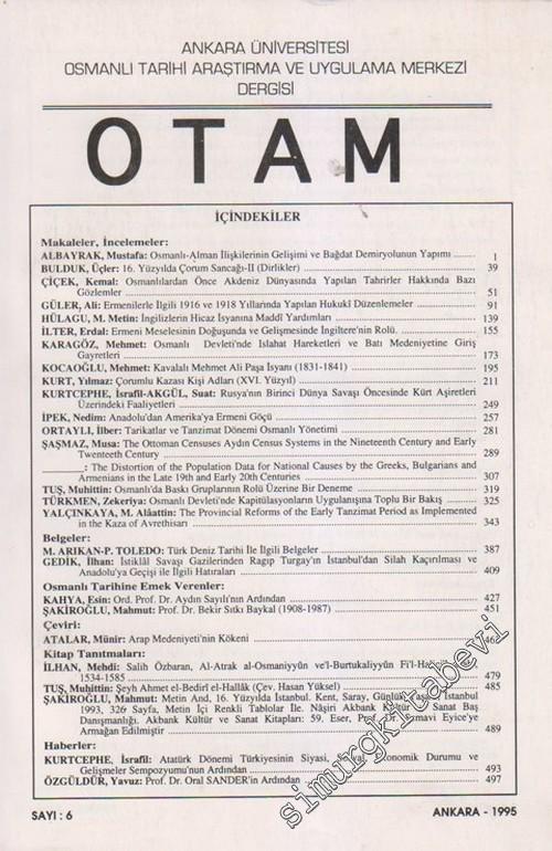 #smrgDERGİ OTAM: Osmanlı Tarihi Araştırma ve Uygulama Merkezi Dergisi - Sayı: 6