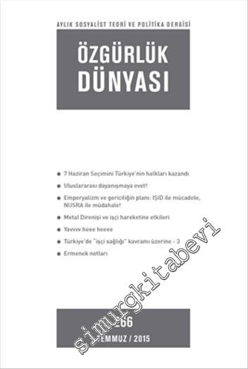Aylık Sosyalist Teori ve Politika Dergisi, Özgürlük Dünyası'nın TEMMUZ 2015 tarihli 266. sayısı çıktı.