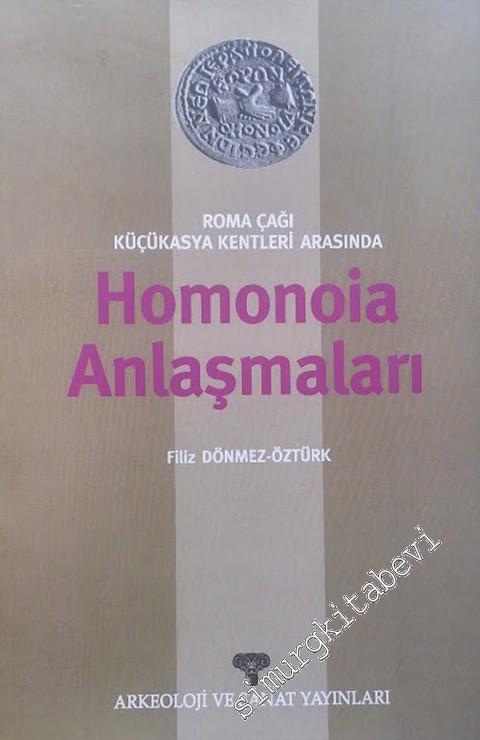 Homonia anlaşmaları 18. yüzyılın sonlarından itibaren öncelikle nümizmatlar arasında tartışma konusu olmaya başlamış ve bugüne kadar konuyla ilgili sınırlı da olsa çeşitli yayınlar yapılmıştır. Elinizdeki kitap homonia anlaşmalarını şimdiye kadar pek çok nümizmatın yaptığı gibi yalnızca sikkeler üzerindeki betimlerden yola çıkarak değil, kentlerin tarihsel süreçleri çerçevesinde de değerlendirilmiş olması bakımından önemlidir. Bu kitabın amacı antik kaynaklarda ve modern literatürde homonia anlaşmalarının nedenleri ile ilgili olarak yer alan dağınık bilgilerin sistematikleştirirlerek daha anlaşılır bir hale getirilmesi ve anlaşmaların karakterinin geniş bir perspektif ile ortaya konmasıdır.