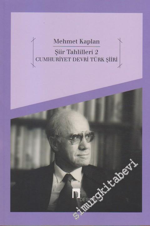 Eserde F. Nafiz Çamlıbel'den H. Macit Selekler'e kadar 71 şairin şiirleri ve bu şiirlerin tehlilleri yer alıyor. Bu kitapta Şiir Tahlilleri 1'deki usûl takip edilmiş ve Cumhuriyet dönemi Türk şiiri geniş olarak ele alınmıştır. ... Prof. Dr. Mehmet Kaplan bu tahlil metodunu "Şiir Tahlilleri 2", "Cumhuriyet Devri Türk Şiiri"ne de uygulamıştır. Bu eser büyük bir ilgi uyandırmış, Cumhuriyetin 50. yıldönümü dolayısıyla yapılan birinci baskısı bir ay içinde satılmıştır. Cumhuriyet devrinde yetişmiş şairlerin yüze yakın şiirinin şekil, muhteva ve üslubunu, psikolojik, sosyal ve estetik bakımından ayrıntılı bir şekilde inceleyen bu eser, edebiyat öğretmenlerine ve öğrencilere hem metin tahlili metodunu somut örneklerle gösteren, hem de onlara Cumhuriyet devri Türk şiirini tanıtan ve sevdiren kitaptır... (Arka Kapak)