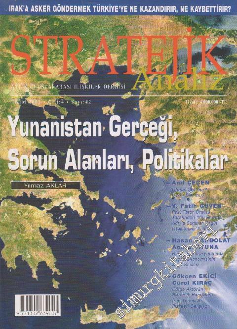 #smrgDERGİ Stratejik Analiz Aylık Uluslararası İlişkiler Dergisi - Dosya: Yunanistan Gerçeği, Sorun Alanları, Politikalar: Yılmaz Aklar - Sayı: 42 4 Ekim 2003