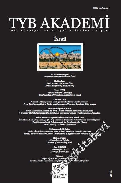 TYB Akademi: Dil, Edebiyat ve Sosyal Bilimler Dergisi - İsrail Özel Sayısı - Sayı: 21 Yıl: 7 Eylül