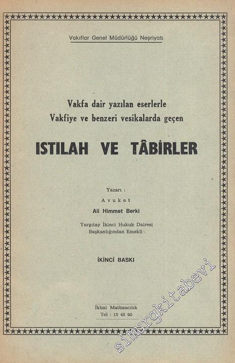 Ali Himmet Berki'nin kitabı, Vakıf kavramlarına yer veren bir sözlük. Sözlükte vakıflarla ilgili, Osmanlıca ve Türkçe çok sayıda kavram yer alıyor. Çalışma, bir sözlük çalışması olmaktan öte, bu kavramların vakıfta ne anlama geldiklerini de açıklıyor.