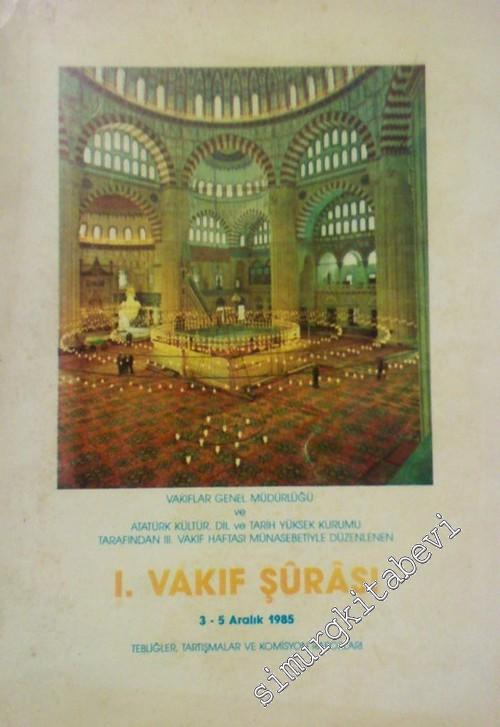 Vakıflar Genel Müdürlüğü ve Atatürk Kültür, Dil ve Tarih Yüksek Kurumu Tarafından 3. Vakıf Haftası Münasebetiyle Düzenlenen 1. Vakıf Şurası Tebliğler, Tartışmalar ve Komisyon Kararları - 1985 #smrgSAHAF