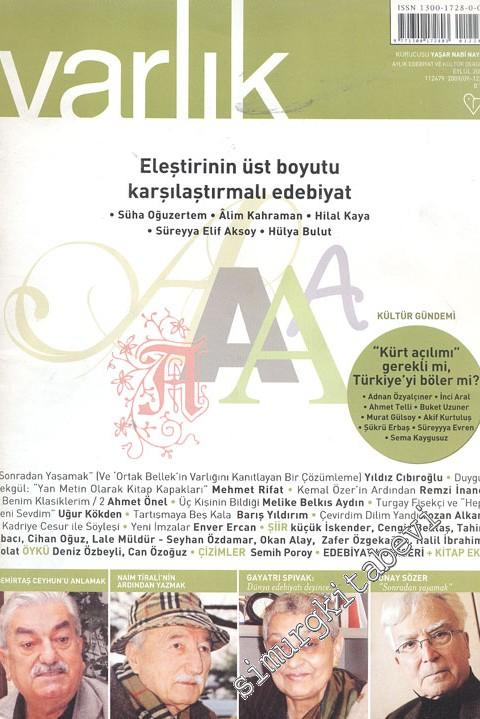 Varlık - Aylık Edebiyat ve Kültür Dergisi, Dosya: Eleştirinin Üst Boyutu Karşılaştırmalı Edebiyat - Eylül 2009, Sayı: 1224, Yıl: 77