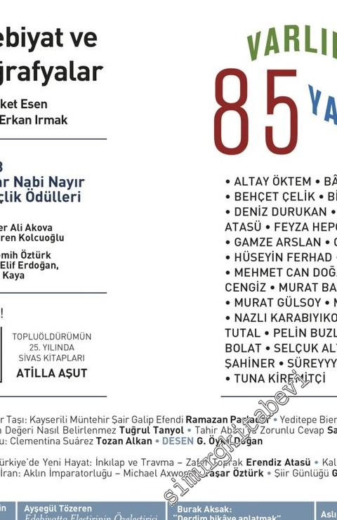 Varlık Kitaplığı: Türkiye'de Yeni Hayat: İnkılap ve Travma - Zafer Toprak (Erendiz Atasü) . Edebiyatta Eleştirinin Eleştirisi / Ayşegül Tözeren (Derya Çakır) - Durmadan Leyla / Aslı Tohumcu (Deniz Durukan) - Murat Özyaşar ile Söyleşi (Dolunay Aker) - Kalk Gidelim Edirne / Esra Alkan (Hasan Akarsu) . İran: Aklın İmparatorluğu / Michael Axworthy (Yaşar Öztürk) . Şiir Günlüğü (Gültekin Emre) . Küresel Haberler (Zeynep Şen)
