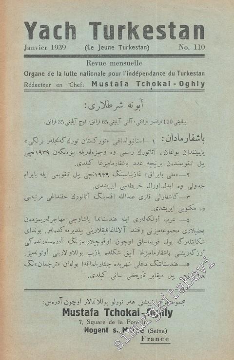 Yach Turkestan - Organe de défense nationale du Turkestan - No:110, Janvier 1939