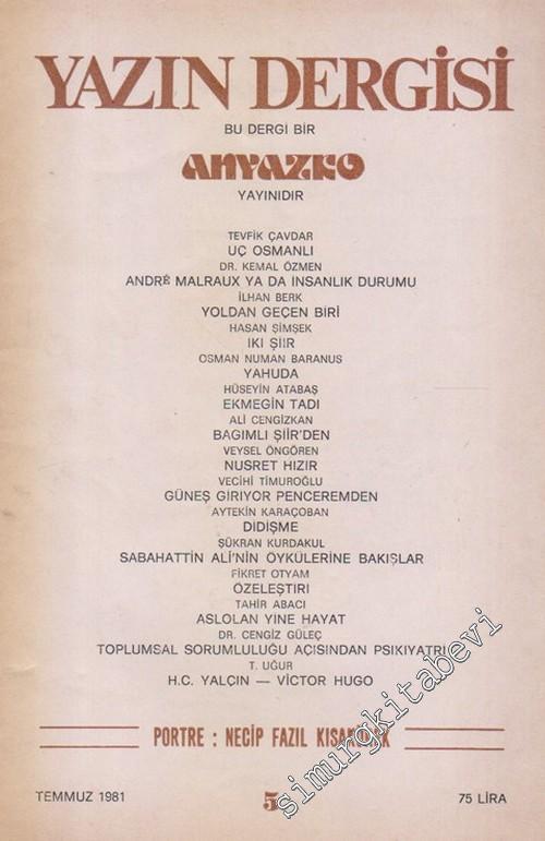 Yazın Dergisi, Dosya : Necip Fazıl Kısakürek - Sayı 5 Temmuz 1981 #smrgDERGİ
