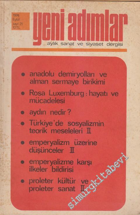 Yeni Adımlar Aylık Sanat ve Siyaset Dergisi - Dosya: Anadolu Demiryolları ve Alman Sermaye Birikimi - Rosa Luxemburg: Hayatı ve Mücadelesi - Aydın Nedir? - Türkiye'de Sosyalizmin Teorik Meseleleri II - Emperyalizm Üzerine Düşünceler II - Emperyalizme Kar