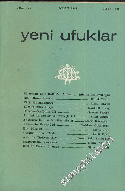 Yeni Ufuklar Aylık Sanat Fikir Dergisi - Sayı: 191, Nisan 1968 #smrgDERGİ